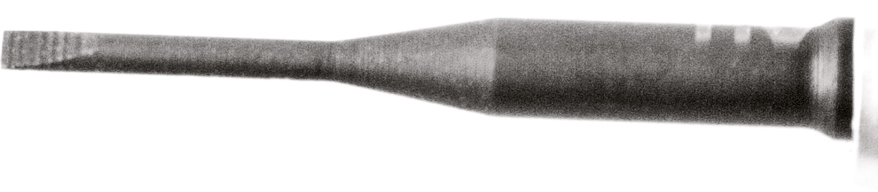 Length: 110 mm Blade Size: 1.0 mm Shaft size: 3.0 mm Weight: 30 g Screwdriver Blade with wings, is fixed with an additional screwed cover. Coloured knobs make the identification more easy. Round knob is flat on one side to avoid rolling off the table.