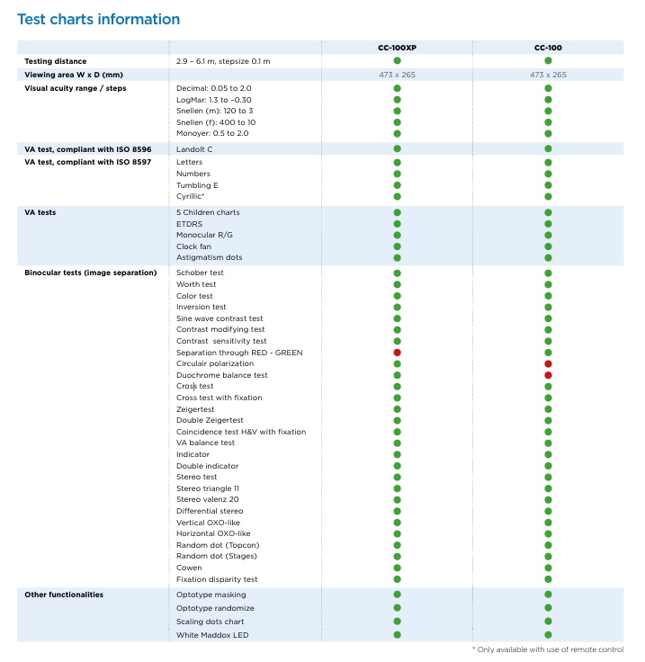 Takket være 100 % sirkulær polarisasjon oppnår man optimal bilde-separasjon uten “ghosting”, noe som gir pålitelige resultater ved binokulære og stereoskopiske tester. Skjermen kan styres via fjernkontroll, PC, nettbrett eller sømløst integreres med Topcon CV-5000S refraksjonssystem.